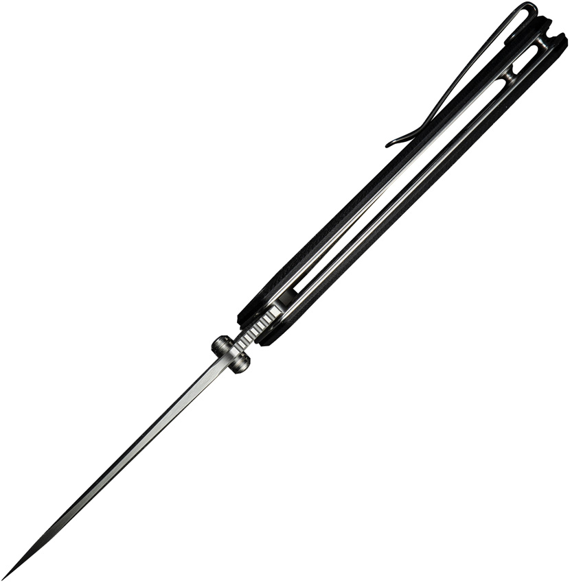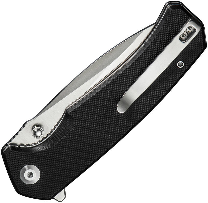 4.88″ (12.4cm) closed. 3.75″ (9.53cm) satin finish 9Cr18MoV stainless drop point blade. Black G10 handle. Extended tang. Thumb stud. Pocket clip. Boxed.