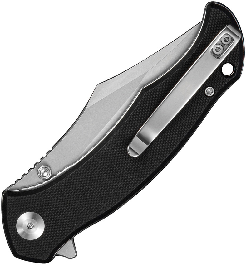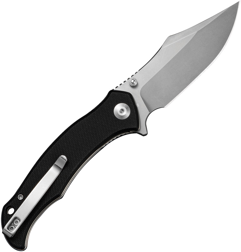 4.5″ (11.43cm) closed. 3.5″ (8.89cm) stonewash finish D2 tool steel clip point blade. Black G10 handle. Extended tang. Thumb stud. Lanyard hole. Pocket clip. Black nylon zippered storage case. Boxed.