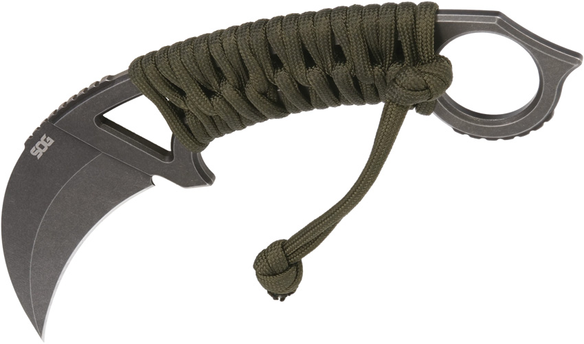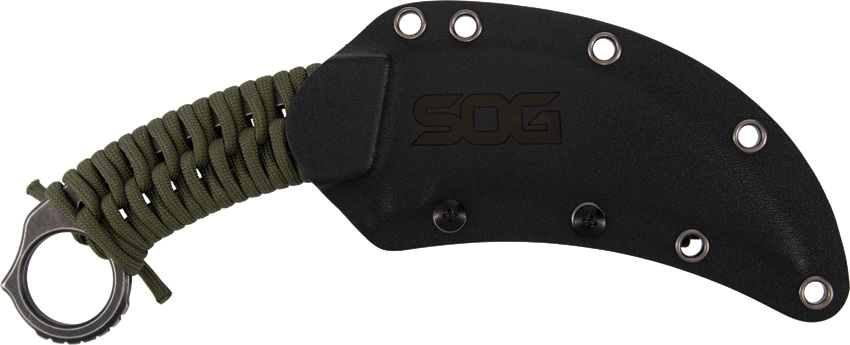 8.75″ (22.23cm) overall. 4″ (10.16cm) black stonewash finish AUS-10A stainless karambit blade. OD green cord wrapped handle. Full tang. Finger ring. Black Kydex belt sheath.