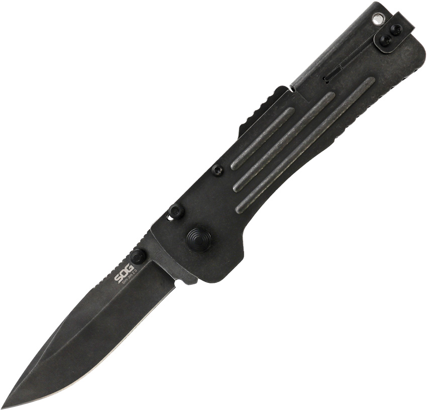 Assisted opening. 4.25″ (10.8cm) closed. 3.13″ (7.95cm) black stonewash finish AUS-8 stainless clip point blade. Black stonewash finish 420HC stainless handle. Thumb stud. Pocket clip. Lockback safety switch. Hang packaged.