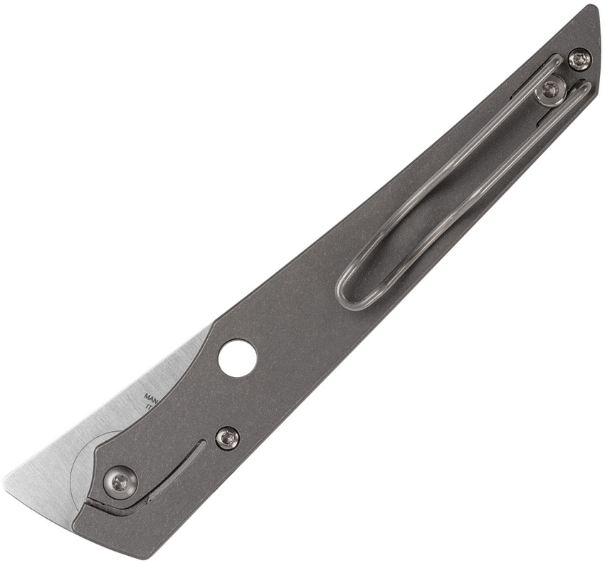 4.75″ (12.07cm) closed. 3.63″ (9.22cm) satin finish saber ground Bohler M390 stainless blade. Gray titanium handle. Thumb pull. Pocket clip. Boxed.
