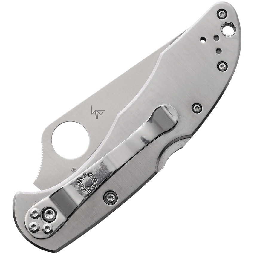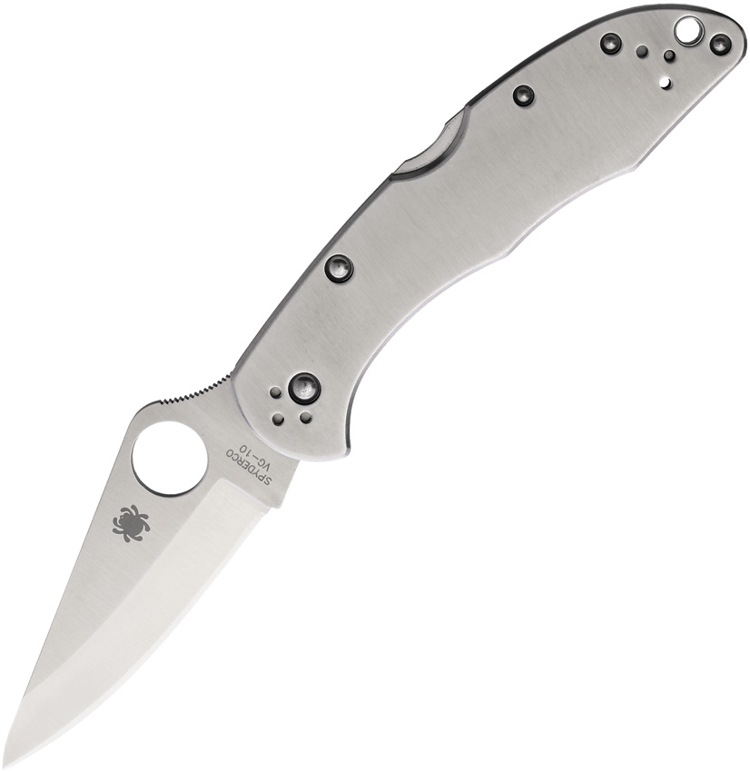 4.25″ (10.8cm) closed. 3″ (7.62cm) satin finish VG-10 stainless blade. Brushed stainless handle. Thumb pull. Pocket clip. Lanyard hole. Boxed.