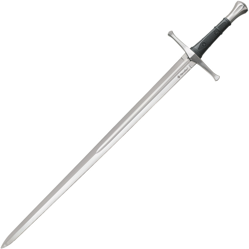 43.5″ (110.49cm) overall. 33.38″ (84.79cm) satin finish 1060HC steel blade. Black TPR handle. Stainless guard and pommel. Black wood scabbard. Boxed.