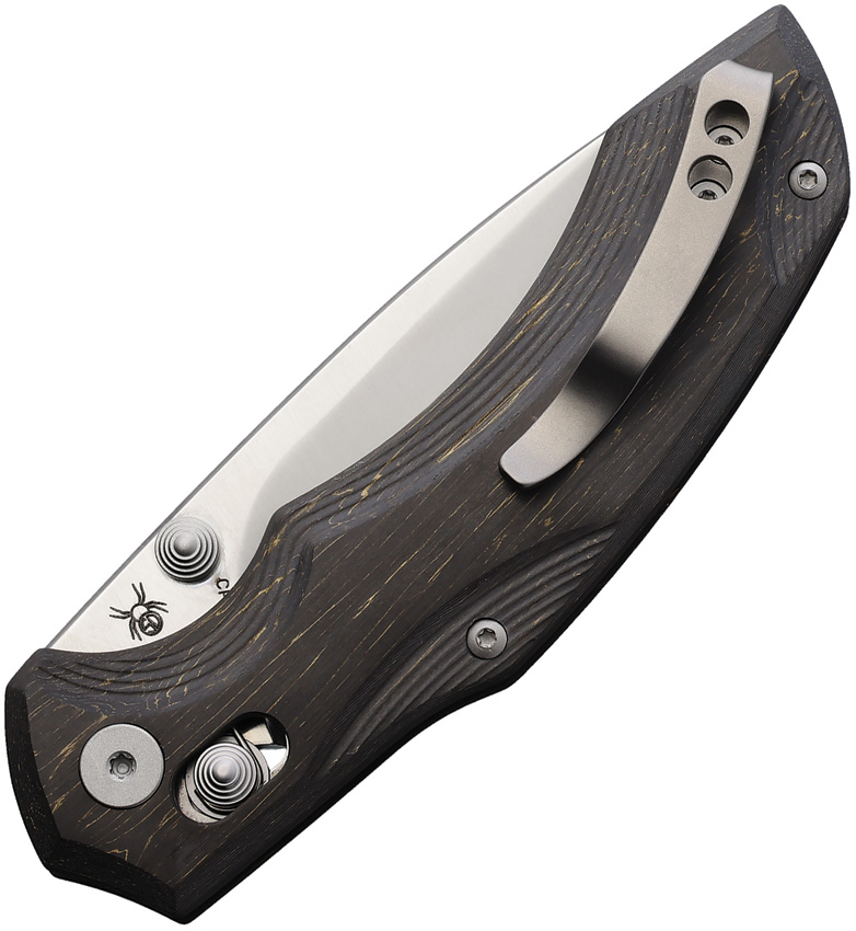 4.25″ (10.8cm) closed. 3.25″ (8.26cm) satin finish CPM MagnaCut stainless blade. Light carbon fiber handle. Thumb stud. Pocket clip. Boxed.