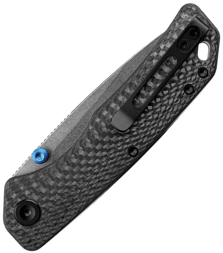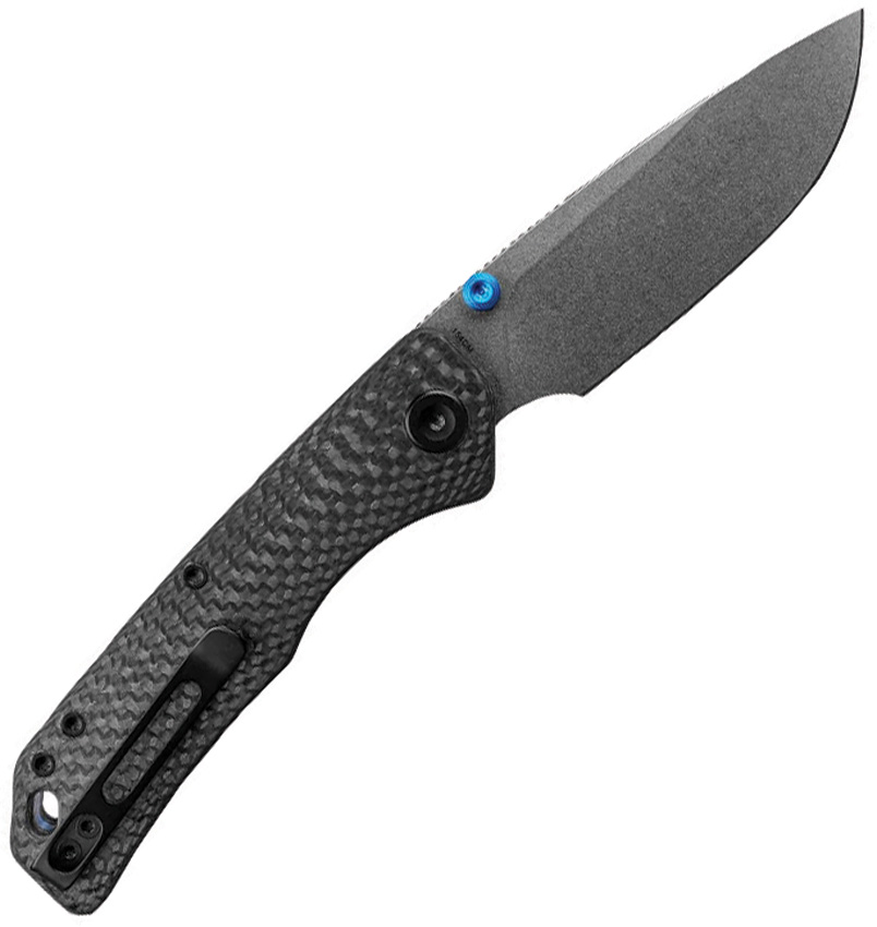 4.25″ (10.8cm) closed. 3.25″ (8.26cm) stonewash finish 154CM stainless drop point blade. Black carbon fiber handle. Thumb stud. Lanyard hole. Pocket clip. Black nylon zippered storage case. Boxed.