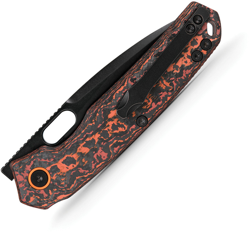 4.75″ (12.07cm) closed. 3.25″ (8.26cm) black stonewash finish Elmax steel blade. Mars Valley Fat carbon fiber handle. Thumb pull. Extended tang. Pocket clip. Boxed.