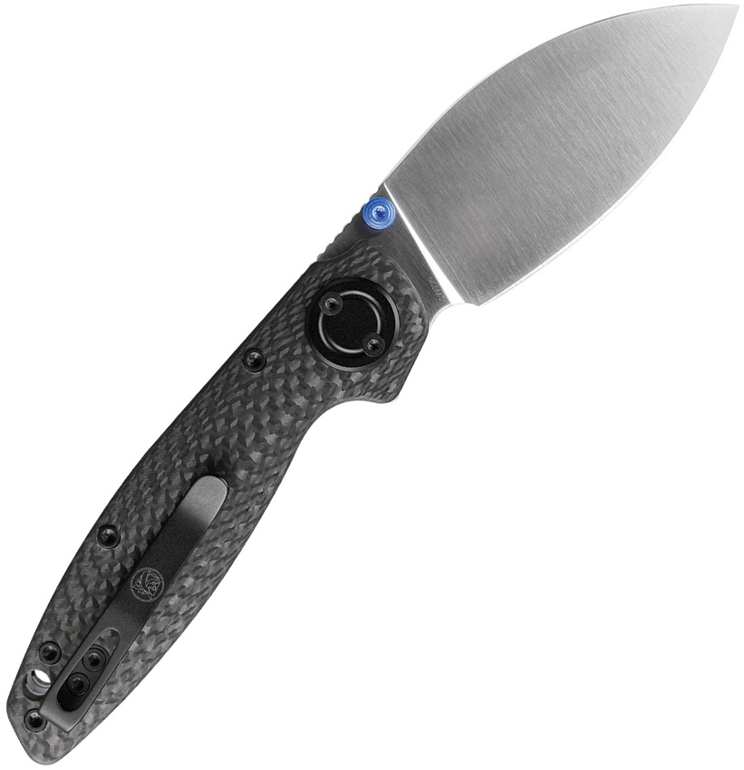 4.13″ (10.49cm) closed. 2.9″ (7.37cm) satin finish Elmax steel blade. Black carbon fiber handle. Thumb stud. Lanyard hole. Pocket clip. Extended tang. Black nylon zippered storage case. Boxed.