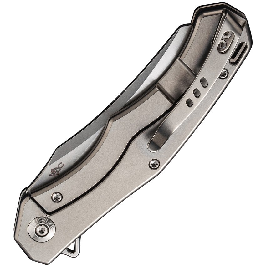 4.63″ (11.76cm) closed. 3.63″ (9.22cm) bead blast finish CPM-20CV stainless blade. Gray bead blast finish titanium handle. Extended tang. Lanyard hole. Pocket clip. Reverse tanto blade. Black nylon pouch. Boxed.