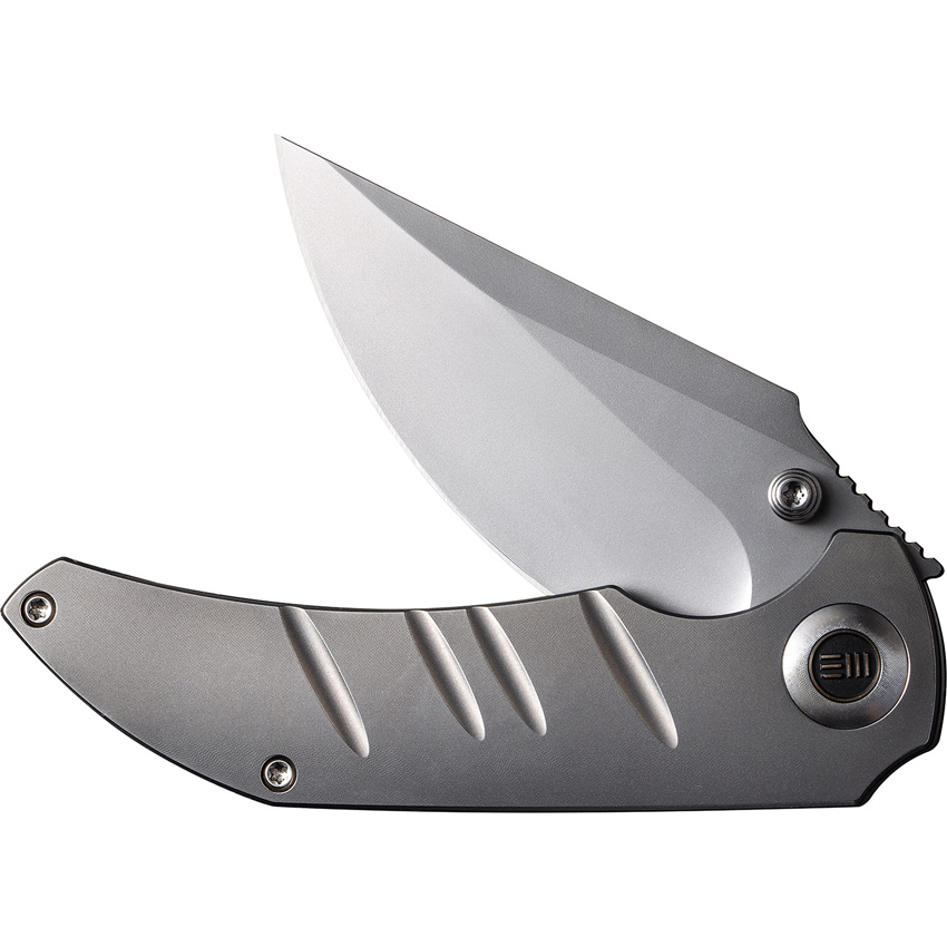 4.13″ (10.49cm) closed. 3.13″ (7.95cm) bead blast finish CPM-20CV stainless blade. Bead blast finish titanium handle. Thumb stud. Pocket clip. Black nylon zippered storage case. Boxed.