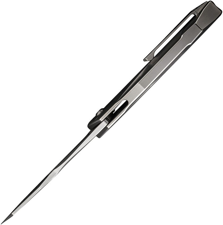5.13″ (13.03cm) closed. 3.88″ (9.86cm) bead blast finish CPM-20CV stainless blade. Bead blast finish titanium handle. Pocket clip. Black nylon zippered storage case. Boxed.
